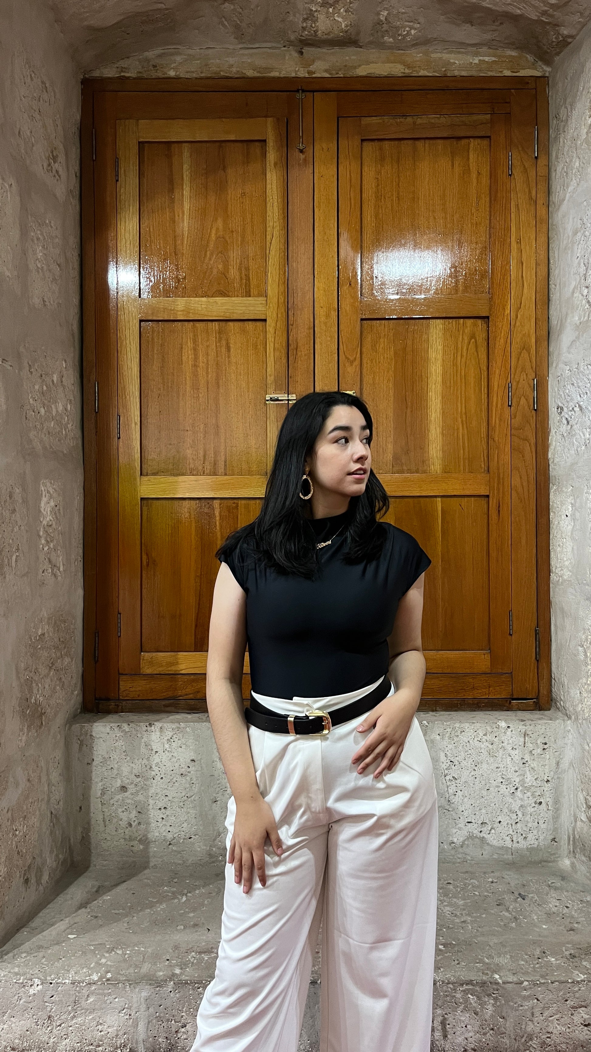 El Body Chloé destaca por su silueta limpia y sofisticada. Tiene cuello ligeramente alto, mangas tipo capa que aportan estructura al hombro, y un ajuste ceñido que realza tu figura sin marcar. Su tejido suave y elástico se adapta al cuerpo con comodidad, haciendo que sea perfecto para llevar tanto en looks formales como casuales.